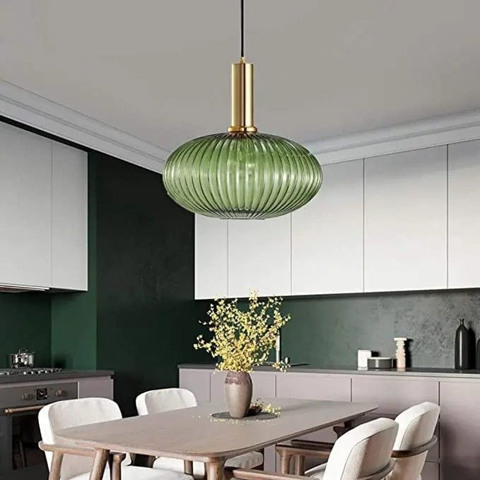 Denne smukke loftlampe kombinerer klassisk vintage-stil med moderne elegance. De rillede glasskærme spreder et blødt og behageligt lys, mens de sofistikerede messingdetaljer giver en luksuriøs og tidløs følelse. Perfekt til køkken, spisestue eller stue, hvor du ønsker at skabe en varm og indbydende atmosfære. De tre forskellige glaskupler tilføjer et dynamisk og unikt touch, samtidig med at designet gør, at lampen passer ind i både klassiske og moderne interiører. Let at installere og kompatibel med LED-pærer for energieffektiv belysning.