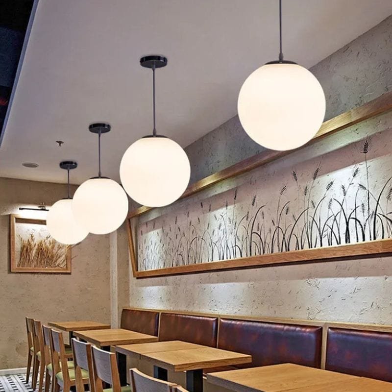 Denne stilfulde og billige loftlampe kombinerer enkelhed og funktionalitet for at skabe en moderne og harmonisk belysning. Med sine runde, opalfarvede glaskupler spreder den et blødt og behageligt lys, perfekt til stuen, spisestuen eller soveværelset.