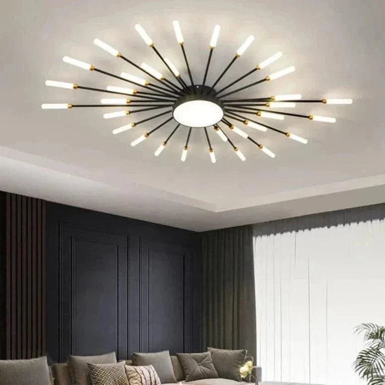 Skab et imponerende blikfang i dit hjem med denne ekstra store loftlampe i et elegant, solinspireret design. Med sine strålende lysstænger og en central lyskilde giver den både direkte og indirekte lys, hvilket skaber en luksuriøs og moderne atmosfære. Perfekt til stuen, spisestuen eller entréen, hvor du ønsker en storslået og unik belysningsløsning.