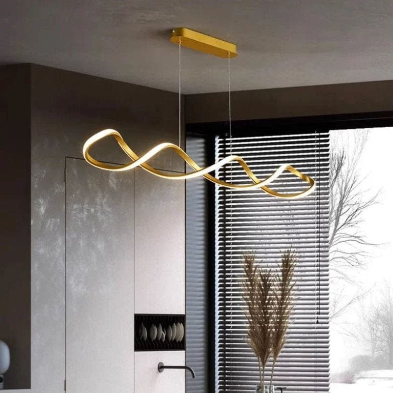 Denne stilfulde loftlampe kombinerer moderne elegance med innovativ LED-teknologi. Dens unikke bølgede design giver rummet et stilfuldt og eksklusivt præg, samtidig med at den energieffektive LED-belysning skaber behageligt lys over spisebordet. Den sorte metalbase og den tynde, svævende lysprofil gør, at lampen smelter sammen med både minimalistiske og luksuriøse interiører. Perfekt til køkkener, spisestuer og stuer, hvor du ønsker en sofistikeret men funktionel belysning.