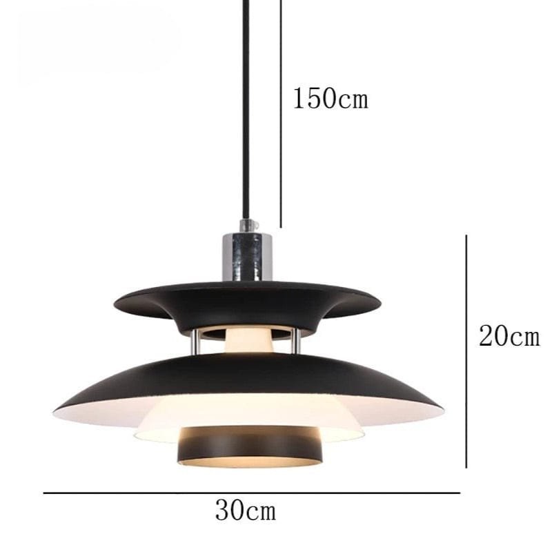 Denne lille loftlampe i retrodesign kombinerer tidløs æstetik med moderne funktionalitet. Inspireret af klassiske skandinaviske former har den en elegant flerlaget lampeskærm i høj kvalitet af aluminium, hvilket giver en blød og behagelig lysspredning. Findes i flere livlige farver for at passe til forskellige indretningstilar. Med en 1,5 meter lang ledning er den nem at justere i højden, perfekt til køkken, spisestue, caféer eller stuer. Nem at installere og kompatibel med forskellige lyskilder.