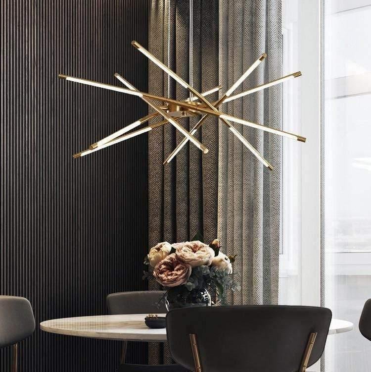 Denne moderne loftlampe i messing er en elegant og stilfuld belysningsløsning, der løfter dit køkken eller spisestue. Med sit skulpturelle design og LED-lysarme skaber den en harmonisk balance mellem funktion og æstetik. Perfekt til dig, der ønsker en unik lyskilde med et luksuriøst præg.