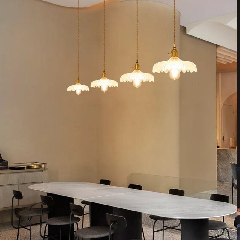 Hvordan kan man integrere en retro loftlampe med blomstermønster i indretningen?