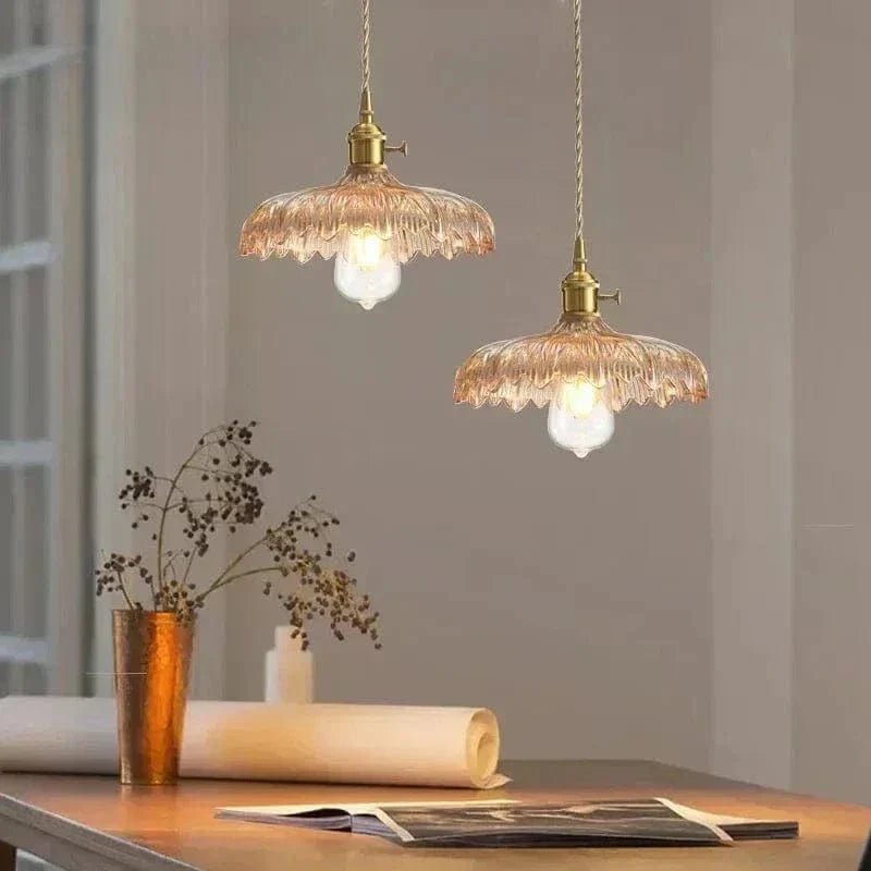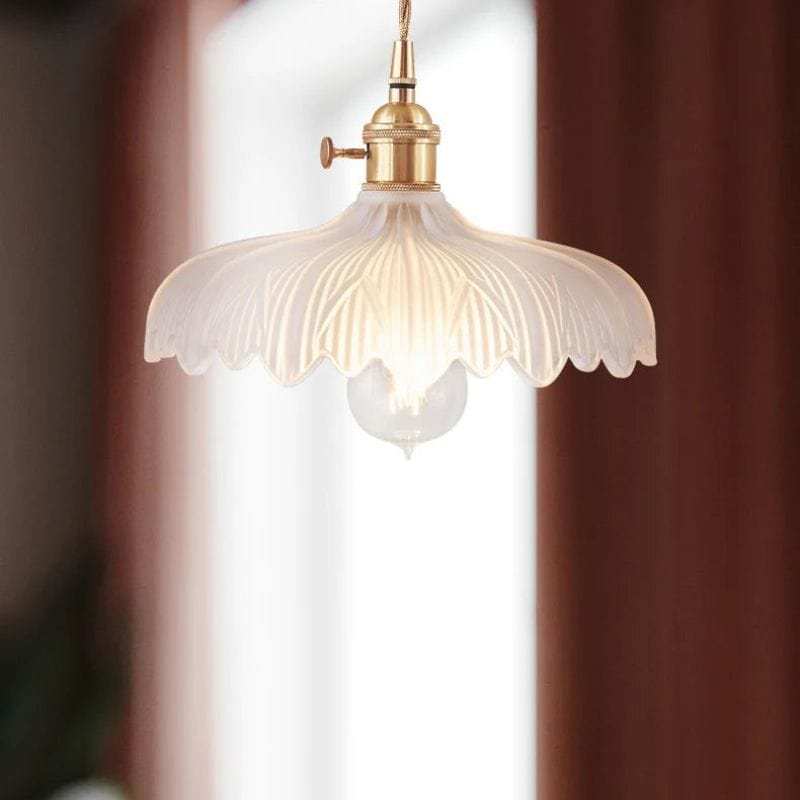 Denne smukke loftlampe i retrostil kombinerer tidløs charme med klassisk elegance. Den blomstret glaskærm skaber en blød og behagelig lysfordeling, mens messingdetaljerne giver en vintagefølelse, der passer perfekt i køkkenet, stuen eller soveværelset. Den snoede tekstil ledning forstærker det nostalgiske look og gør lampen til en stilfuld indretningsdetalje. Passer perfekt med en dekorativ pære for at forstærke den varme og hyggelige atmosfære.