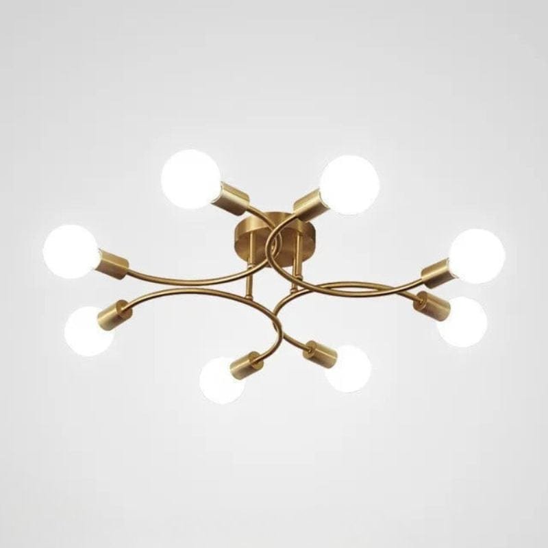 Denne stilfulde loftlampe i retrodesign kombinerer klassisk æstetik med moderne funktionalitet. Med en messingfarvet ramme og flere glaskupler, der spreder et blødt og behageligt lys, bliver den et elegant indslag i stuen, spisestuen eller soveværelset. Dens bølgende arme og sfæriske pærer skaber en harmonisk balance mellem vintage og nutidig stil.
