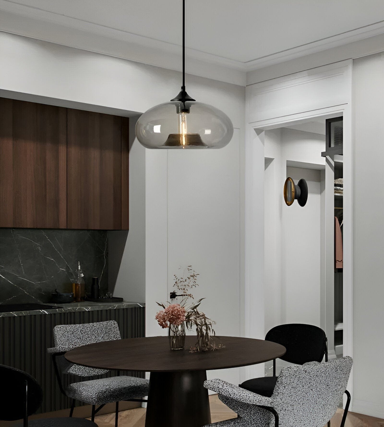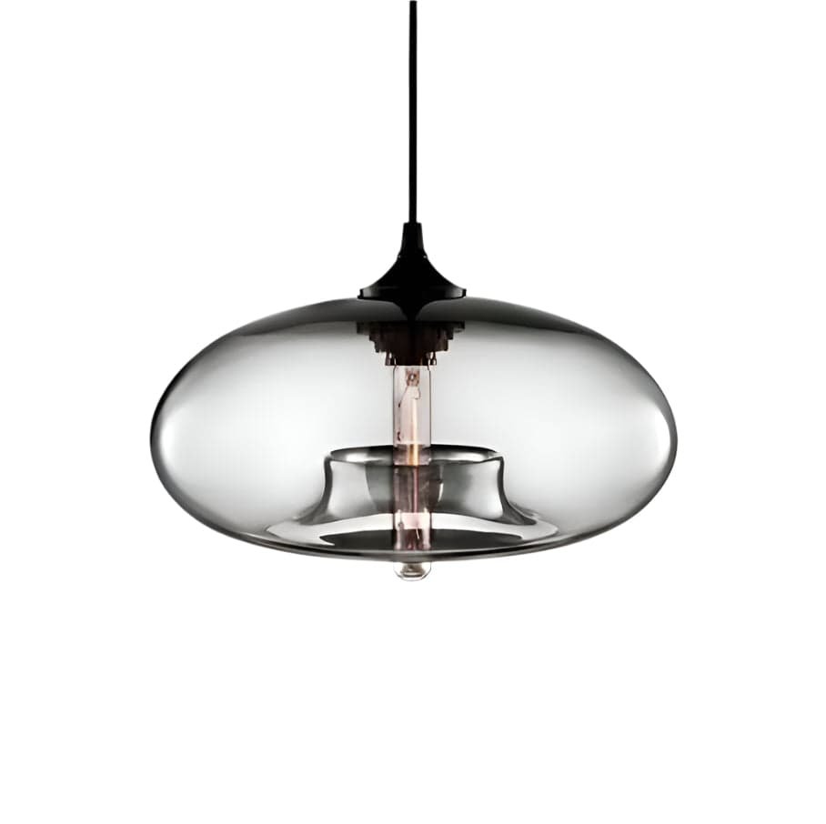 Miro er en vintageinspireret loftslampe i tonet glas, der kombinerer retrofølelse med moderne minimalisme. Den afrundede skærm i røgfarvet glas giver en blød lysstrøm samtidig med at den fremhæver lyskilden på en subtil og elegant måde. Den sorte ophæng i metal skaber en afbalanceret kontrast mod det varme glas. Perfekt til placering over spisebordet, i køkkenet eller stuen, hvor du ønsker at skabe en stemningsfuld belysning med en tidløs form. Miro giver rummet karakter uden at dominere – en klassisk løsning med diskret luksus.
